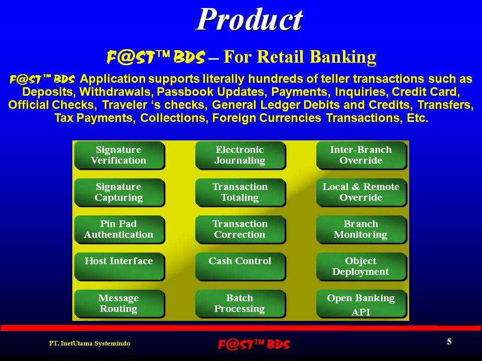 F@ST™BDS Technology pays great attention to our clients’ needs. A major part of our investments is dedicated to the migration of the systems installed by our clients, with particular interests for banks in Indonesia. This base of banking clients and systems represent a major strength, and a major commitment to the future. This is a strength and a commitment from which also all new banking clients will benefit, because the expertise and experience accumulated through projects for all these banks are embedded in our banking offerings, and in the people who makes the systems work.