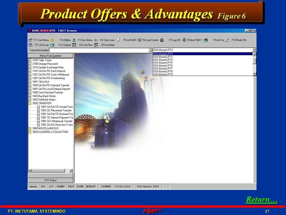 posted to the host as processing occurs, or batched, according to your central processing requirements. Of course, tellers have immediate access to host data, allowing them to response to customer requests promptly for better customer’s satisfactions.